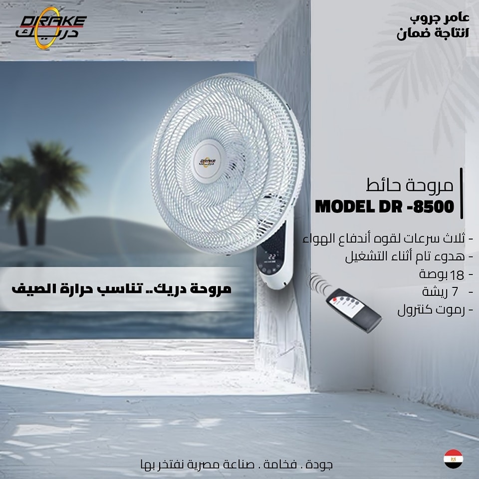 - مروحة حائط 7 ريشة بخاصية الريموت كنترول موديل 8500: بسعر 1050 جنيه مصري.